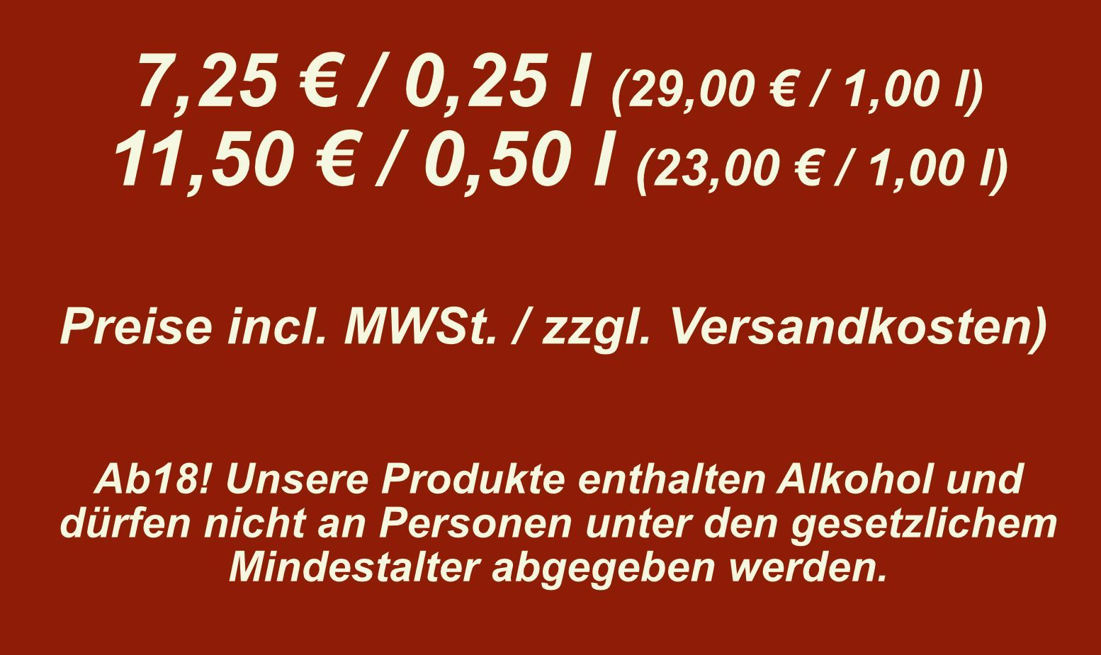 Gebrauchshinweise: Vor Genuss kräftig schütteln